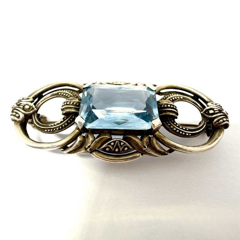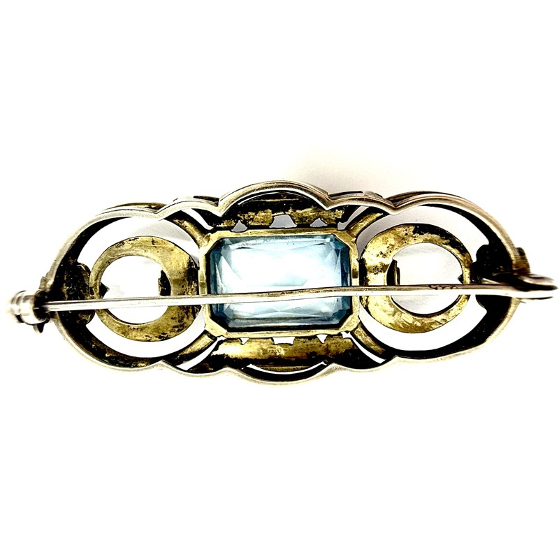 Stříbrná prvorepubliková brož s modrým spinelem