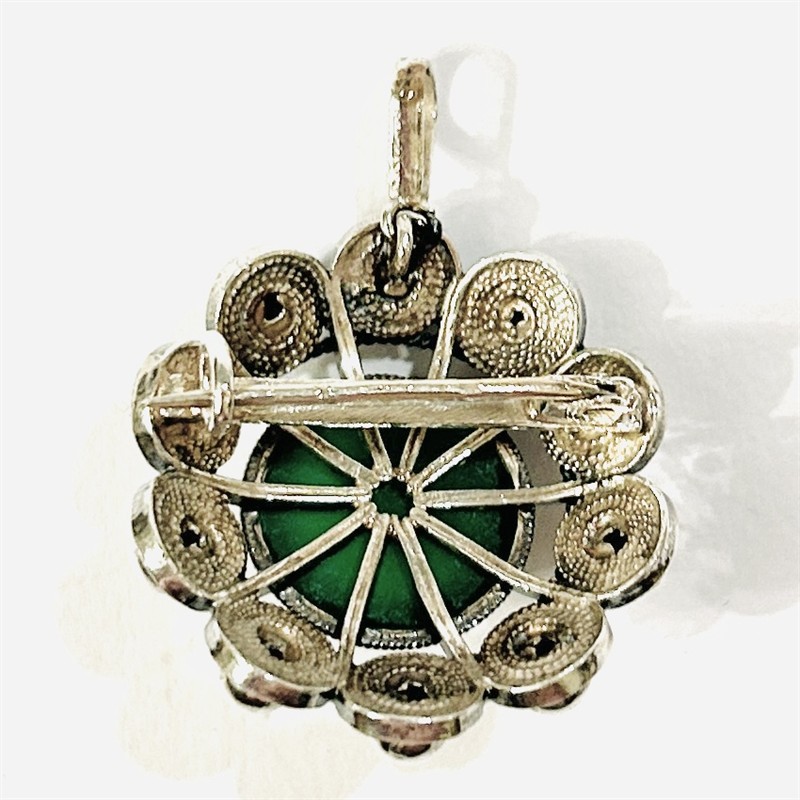 Stříbrná starožitná brož/přívěšek s chryzoprasem