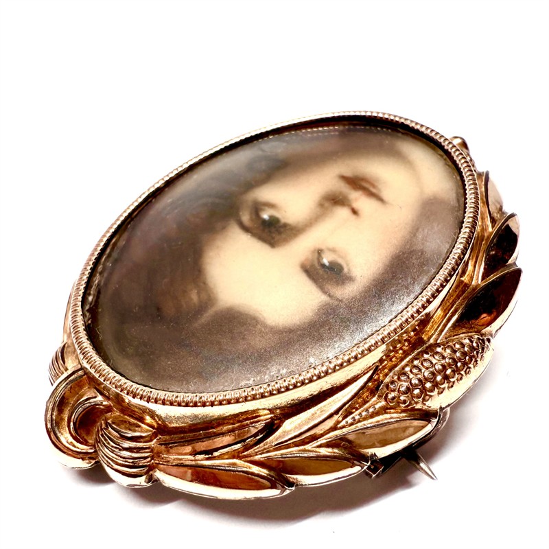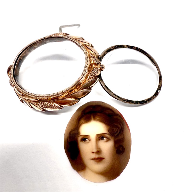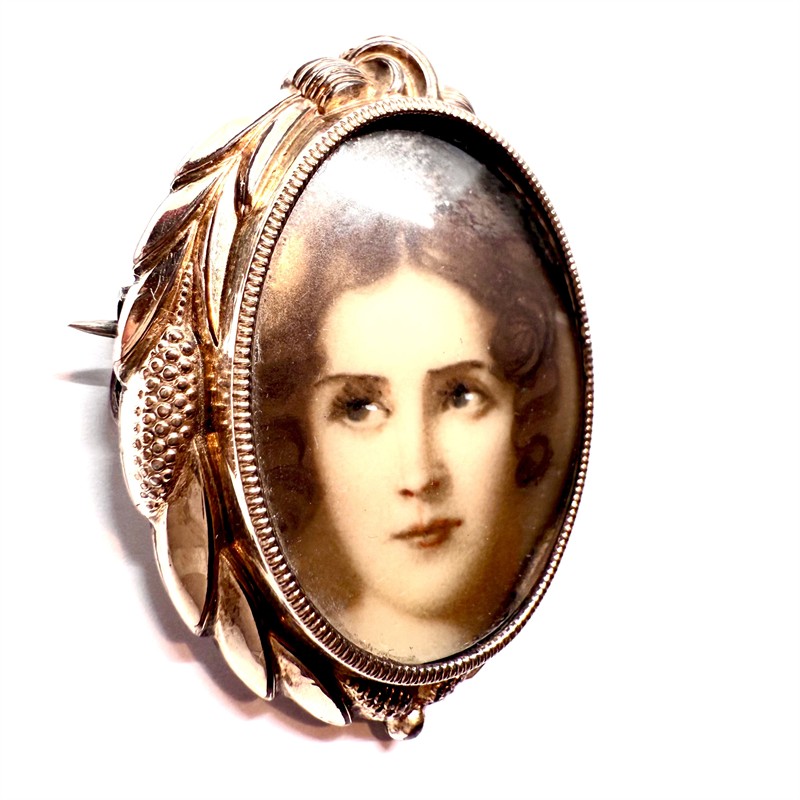 Stříbrná zlacená brož biedermeier s medailonem