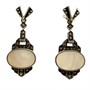 Půvabné náušnice ze stříbra zhotovené ve stylu Art deco. Náušnice zdobí bílá perleť, kontrastně dozdobena drobnými, elegantně se třpytícími markazity. Váha 8,51 g. Délka 4 cm. Výborný stav.