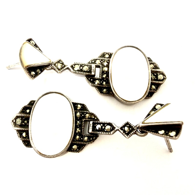 Stříbrné Art deco náušnice s perletí a markazity