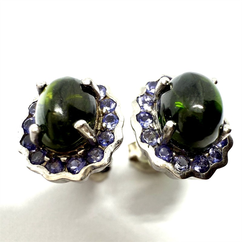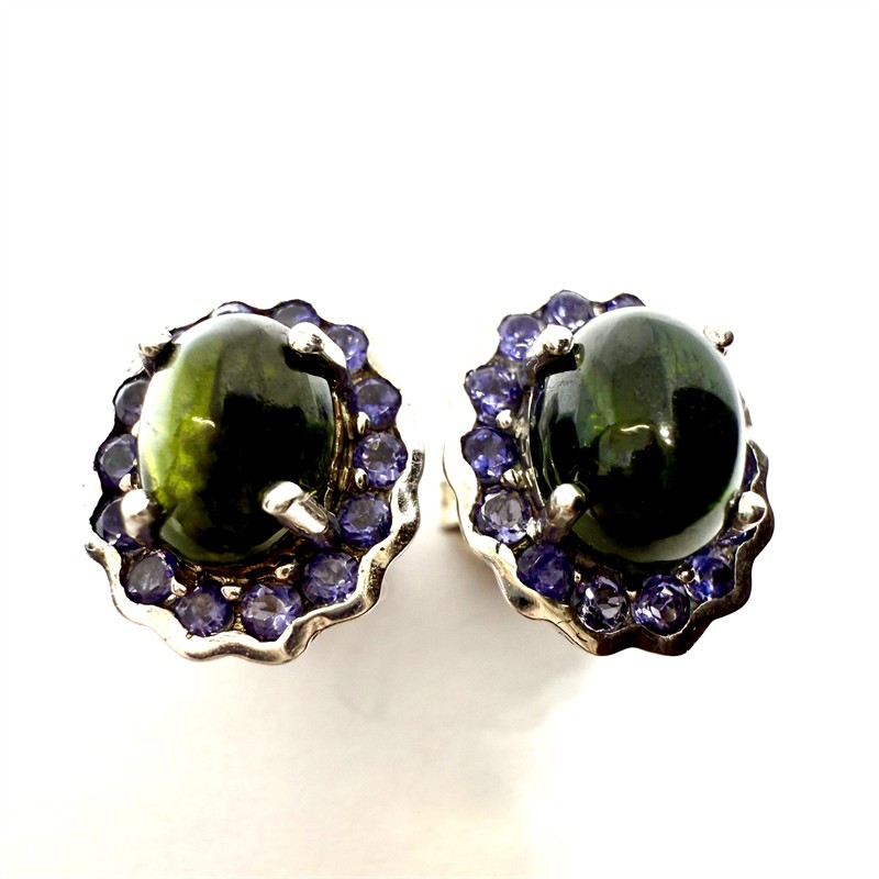 č. 181 194 Stříbrné náušnice s chromdiopsidem a cordierity