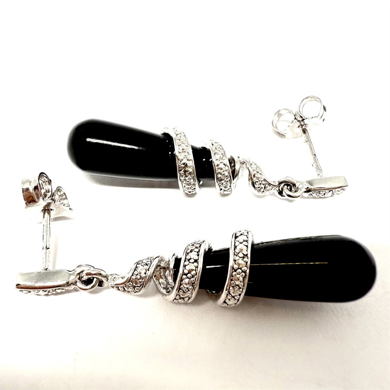 Elegantní stříbrné náušnice se zapínáním na puzetu. Šperk zdobí obsidiánová kapka půvabně zakomponovaná do stříbrné spirály. Sterlingové stříbro (925/1000). Celková váha 6,93 g. Délka cca 4 cm. Příjemně nositelný šperk, vhodný jak na denní nošení tak ke slavnostní příležitosti v perfektním stavu.