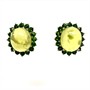 Velmi zdobné, nepřehlédnutelné, stříbrné náušnice se zapínáním na puzetu. Střed osazen velkým prehnitem pocházejícím z Austrálie. Ten rámují sytě zelené chromdiopsidy. Drahé kameny jsou přírodního původu. Stříbro ryzosti 925/1000. Celková váha 6,86 g. Rozměry 1,3 x 1,5 cm. Perfektní stav.