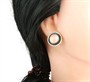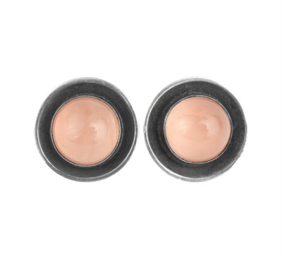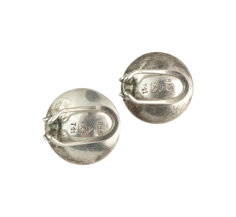 Minimalistické autorské náušnice vyrobené ze stříbra ryzosti 835/1000. Platný český punc, autorská značka a ryzostní číslo. Klipsy s precizně vsazenými růženíny. Pravděpodobně se jedná o německou výrobu z 60. let 20. století. Průměr 1,7 cm. Celková hmotnost 8,55 g.