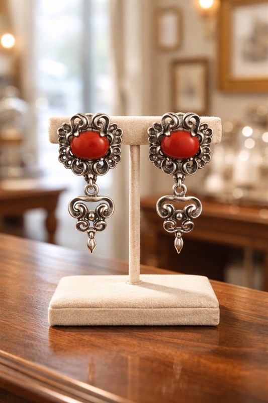 č. 182 277 Stříbrné náušnice s velkým mořským korálem