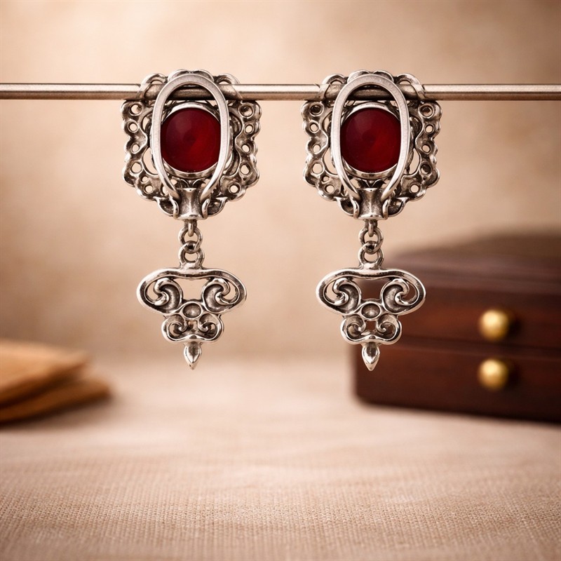 Nadčasové stříbrné klipsové náušnice s mořským korálem působí velmi ženským a ušlechtilým dojmem. Bohatě tvarovaný dekor v kombinaci s teplou červení korálu dodává šperku eleganci s nádechem staré klasiky. Pohodlné klipsy umožňují celodenní nošení bez tahu a nepohodlí. Krásný šperk pro milovnice výrazných, ale kultivovaných doplňků. Korál cca 1 x 0,8cm Náušnice cca 3,5cm