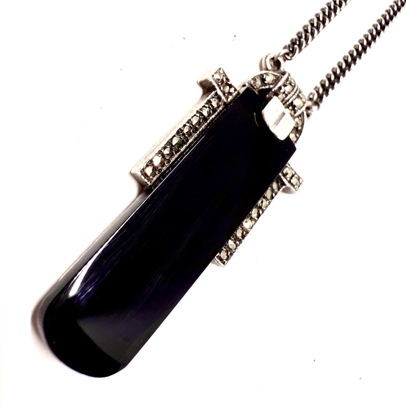 Stříbrný Art deco náhrdelník s onyxem a markazity