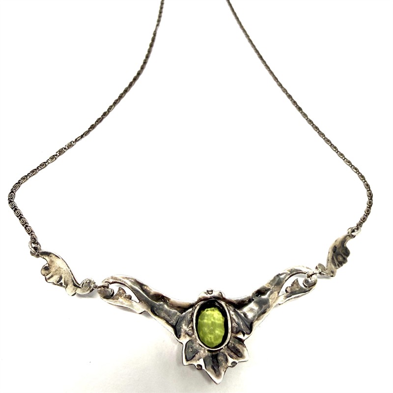 Stříbrný Art deco náhrdelník se zeleným kamenem