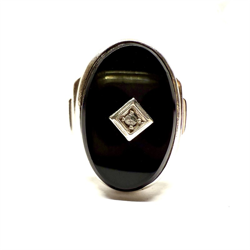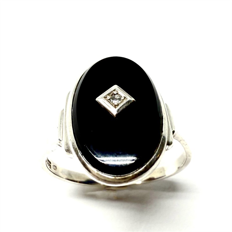 č. 180 724 Stříbrný Art deco prsten s onyxem a diamantem