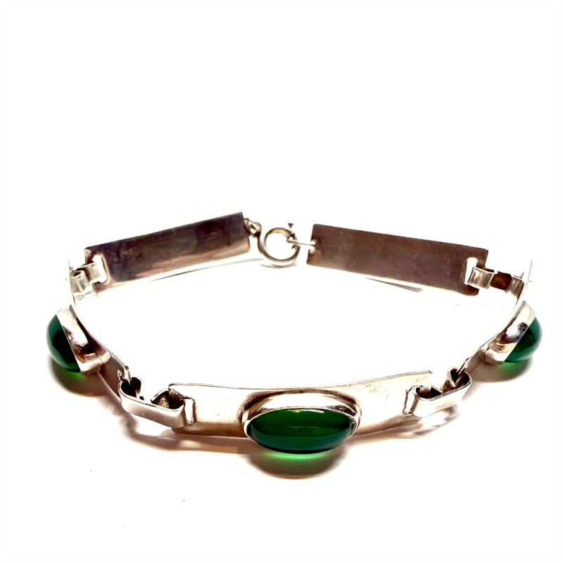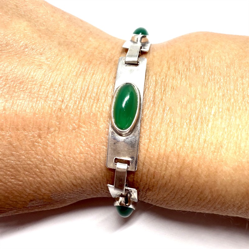 č. 179 925 Stříbrný designový článkový náramek s chryzoprasy