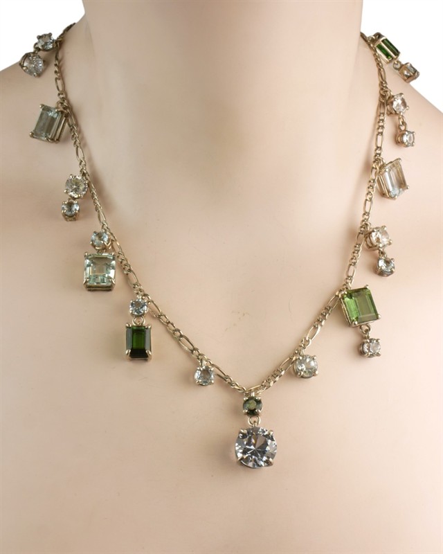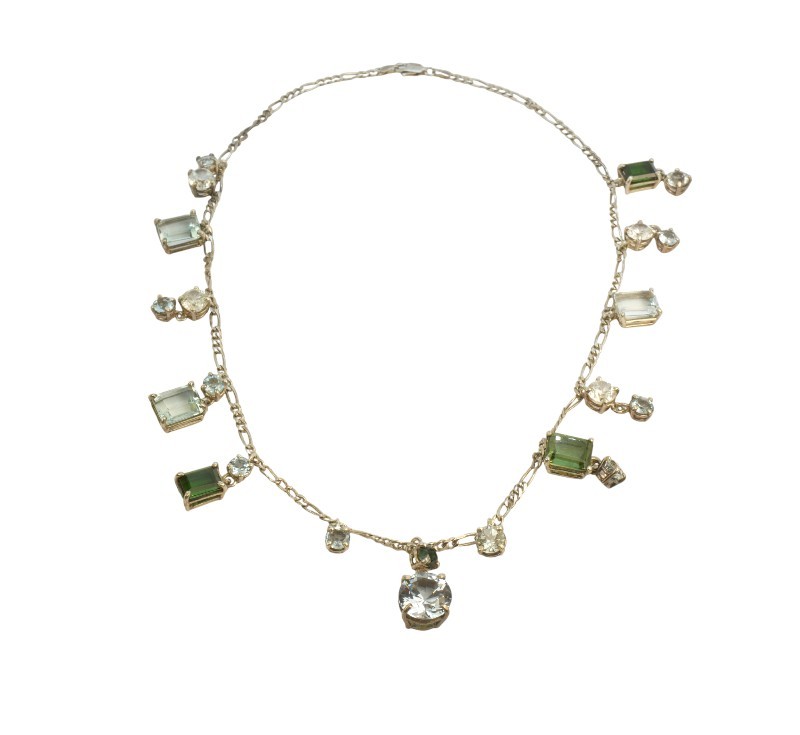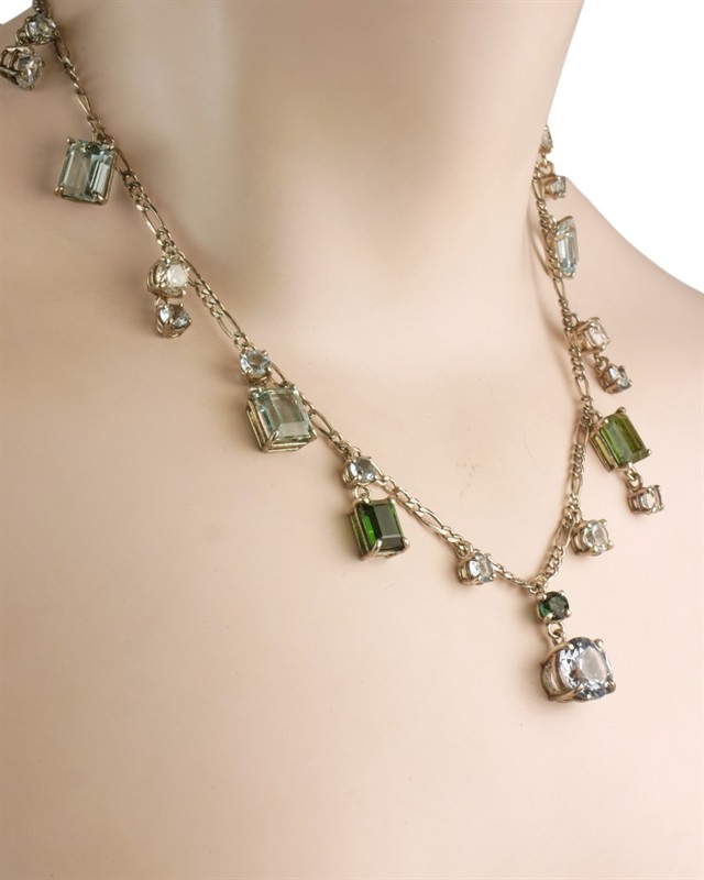 Stříbrný náhrdelník s akvamaríny, turmalíny a topazy