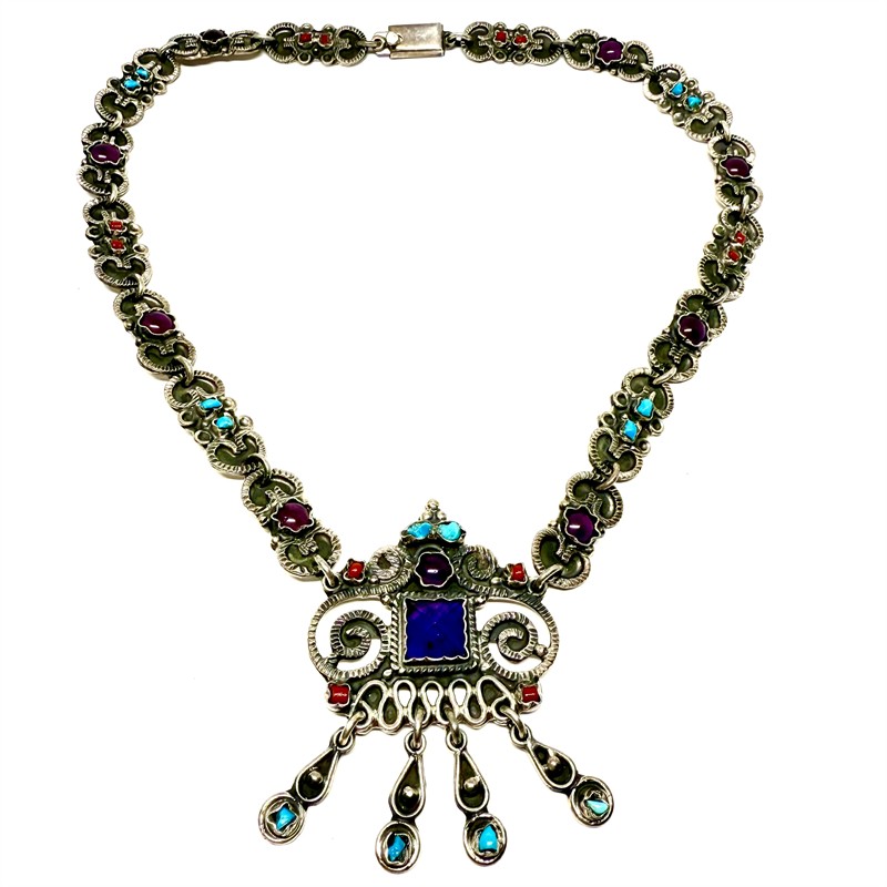 Stříbrný náhrdelník s drahými kameny - Mexico