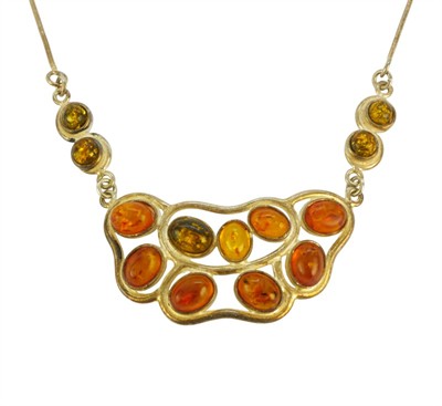 Náhrdelník ze stříbra ryzosti 925/1000 s jantary. Celková hmotnost šperku je 14,80 g. Délka řetízku je 46 cm.