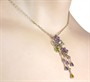 Stříbrný náhrdelník s květy fialek a stylizovaným motýlem Náhrdelník je zdoben ametysty, citríny a peridoty. Přívěsek je vyroben ze stříbra ryzosti 925/1000 a řetízek ze stříbra 835/1000, celková hmotnost náhrdelníku 13,76 g. Rozměry přívěsku 7 x 2,7 cm. Délka řetízku 54 cm.