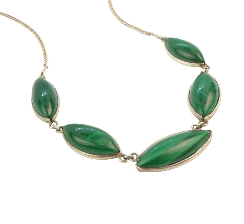 Stříbrný náhrdelník s malachity