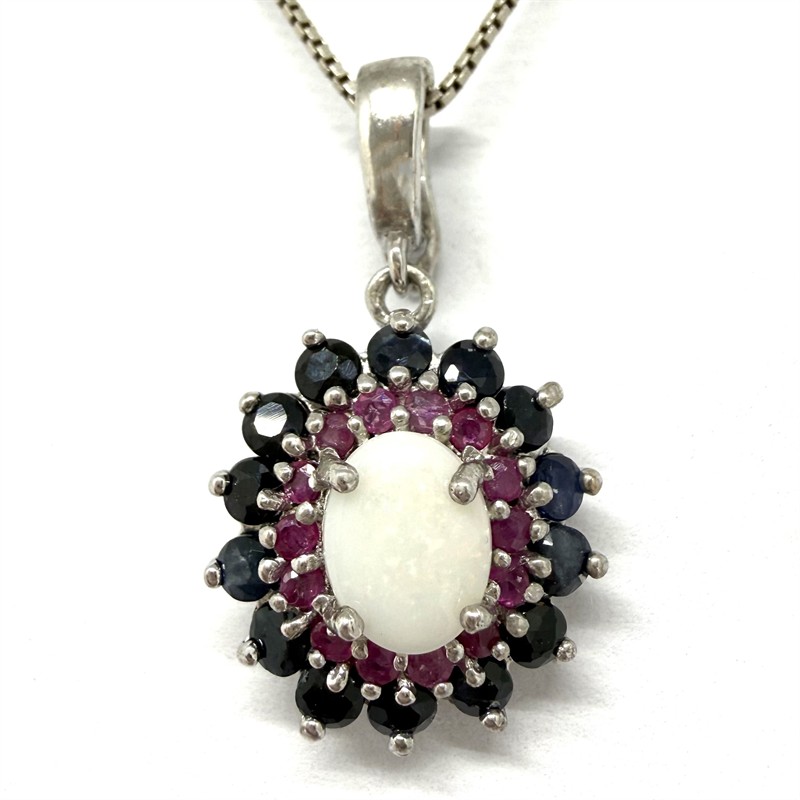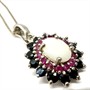 Stříbrný náhrdelník s opálem, rubíny a safíry - květ
