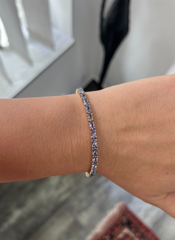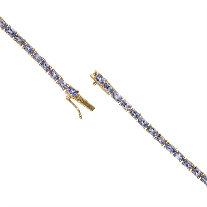 Stříbro o ryzosti 925/1000 pozlacené stříbro váha 11,15 g přírodní tanzanity 39 ks cca 8 ct délka 20,5 cm, šířka 0,4 cm výborný stav osvědčení puncovního úřadu kameny s garancí pravosti zkontrolované v gemologické laboratoři