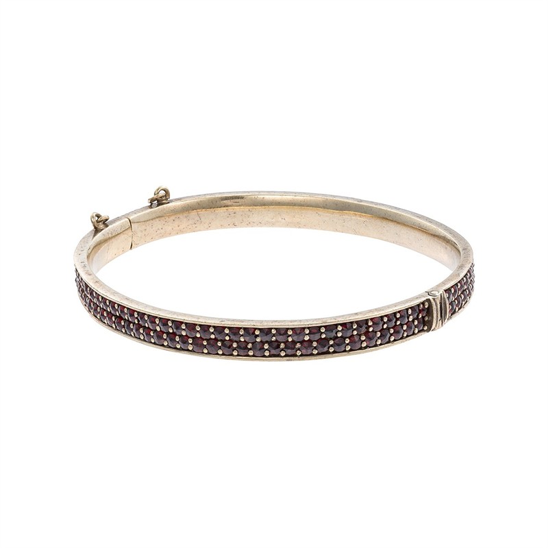 č. 182 710 Stříbrný otevírací pevný náramek s českými granáty