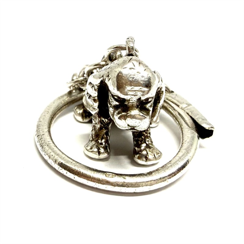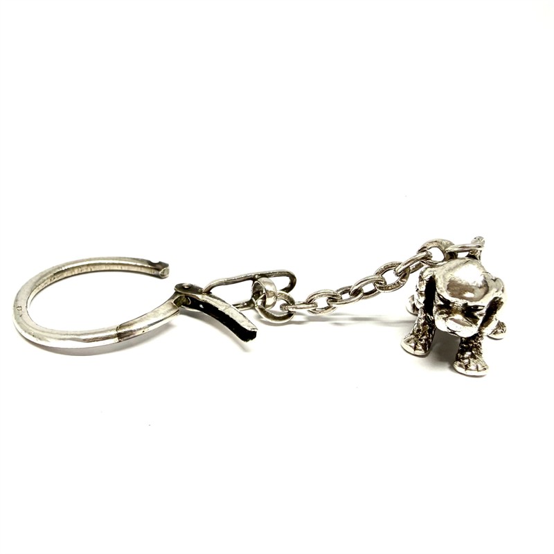 Nevšední přívěsek na klíče - pes. Artefakt byl zhotoven ze sterlingového stříbra (925/1000), o celkové váze 14,11 g. Věrně, trojrozměrně ztvárněný přívěšek představuje psíka. Rozměry závěsu cca 1,5 x 1,5 x 1 cm. Výborný stav.