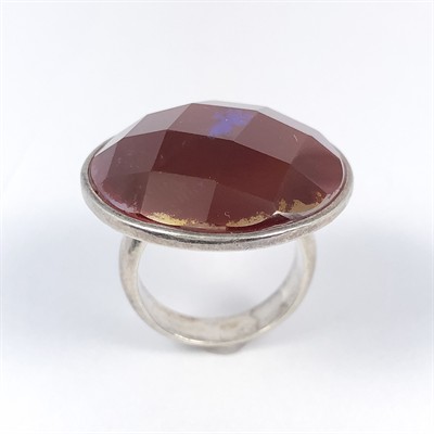 Stříbrný prsten s hnědým kamenem, stříbro o ryzosti 925/1000 o celkové hmotnosti 12,55 g, velikost prstenu: 54, rozměry hlavy prstenu: 2,5 x 2,8 cm
