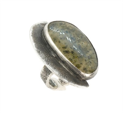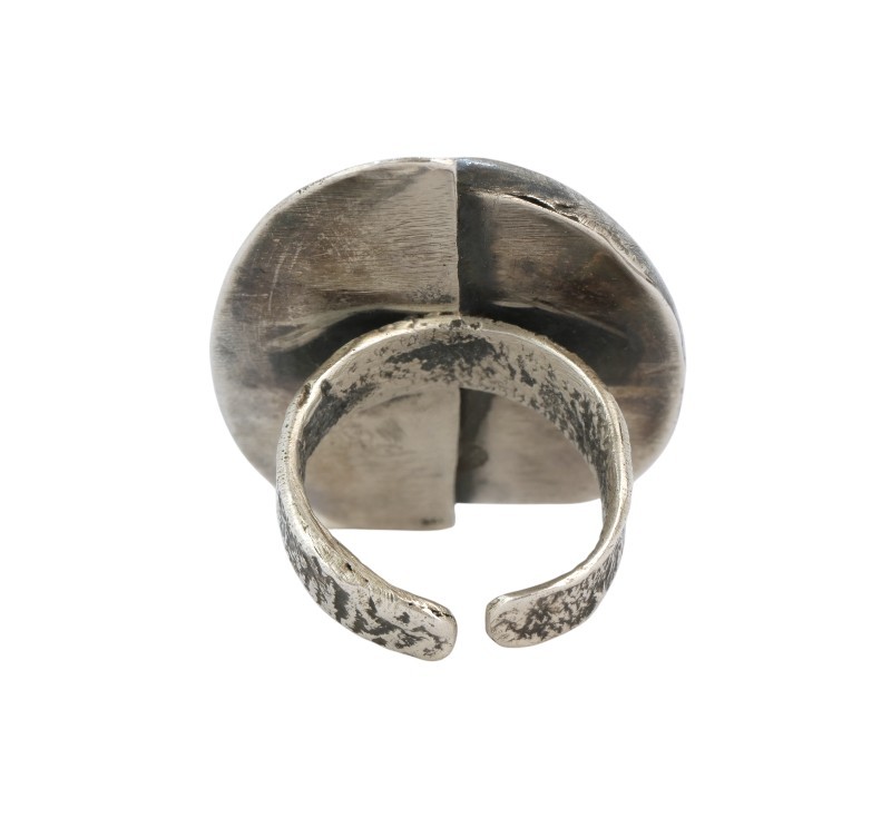 Výrazný autorský prsten od polské šperkařky Jolanty Krajewské vyrobený ze stříbra ryzosti 925/1000. Platný český punc a ryzostní číslo. Velikost hlavy prstenu je 4,2 x 2,8 cm, průměr lze upravit až o pět velikostí. Velikost 53 - 58. Hmotnost 15,88 g.