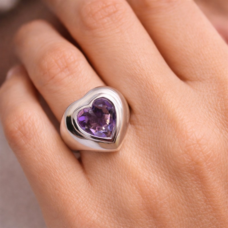 Stříbrný prsten srdcového tvaru s ametystem