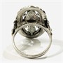 Honosný, historizující prsten, oválná prořezávaná hlavice osazena 2 muglemi přírodního nazelenalého tyrkysu, uprostřed přírodní kultivovaná bílá perla, bohatě plasticky dekorováno. Německá zlatnická práce z poslední čtvrtiny 20. století. Zhotoveno z nezlaceného, umělé patinovaného stříbra o ryzosti 835/1000; nově označeno pucem S-68 (zajíc 4) a ryzostní číslo zevnitř šíny. Hmotnost 5,33 g, velikost 55, délka hlavice 26 mm. Ve velmi zachovalém stavu.