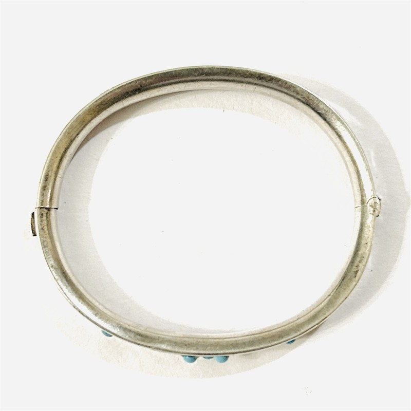 č. 179 266 Stříbrný starožitný náramek s tyrkysy