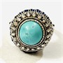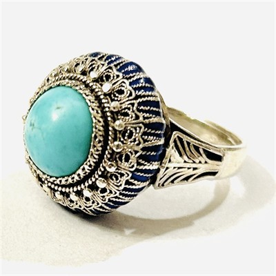 Stříbrný starožitný prsten s tyrkysem a smaltem