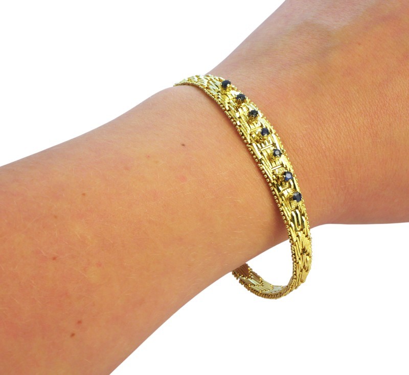 č. 179 453 Stříbrný zlacený náramek se safíry