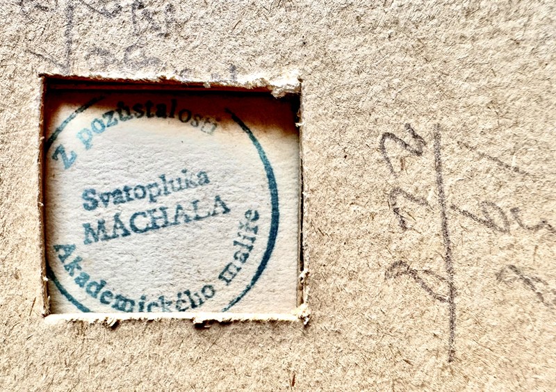 Svatopluk Máchal (1895-1947), malíř a pedagog, žák AVU v Praze u prof. Obrovského. Zastoupen v mnoha galeriích, včetně NG. Kombinovaná technika na papíře, velikost 23/30 cm, 32/38 celkem. rámováno pod sklem.