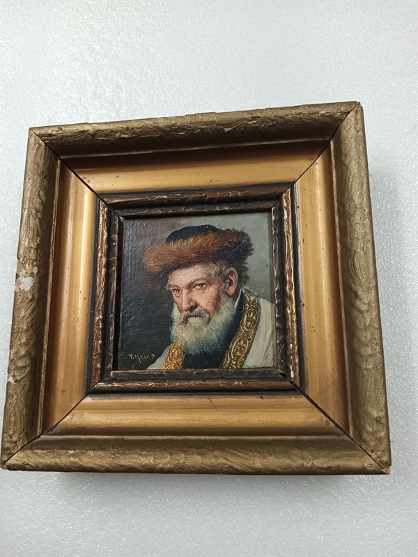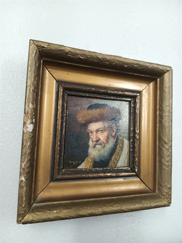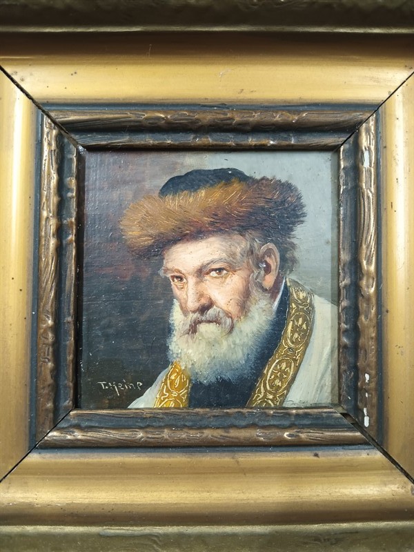 Portrét žida, olej na desce , signováno T.Heine , rám mírně poškozený . Rozměry bez rámu 11 x 11 cm , rozměry celkem 19,5 x 19,5 cm .