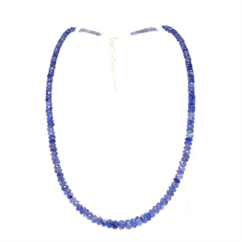 Půvabný náhrdelník zhotovený z přírodních tanzanitů modrofialového odstínu. Šperk je zakončen karabinou ze zlaceného stříbra sterlingové ryzosti (925/1000). Náhrdelník je dlouhý cca 43 cm plus 5 cm prodlužovací řetízek. Perfektní stav.
