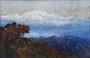 Kvaš, akvarel a tempera na papíru 16 cm x 23 cm. Nesignováno. Vzadu originální přípis se jménem malířky a popisem díla. Autor: Toni Antonie Schulz (1858-1918). Monumentální pohled z Tiger Hill, hory nacházející se v Darjeelingu v indickém státě Západní Bengálsko, která skýtá panoramatický výhled na Mount Everest a Mount Kanchenjunga. Ve světlém rámu se sklem. Indie, Darjeeling, rok 1912. Celkový rozměr s rámem 22 cm x 29 cm.