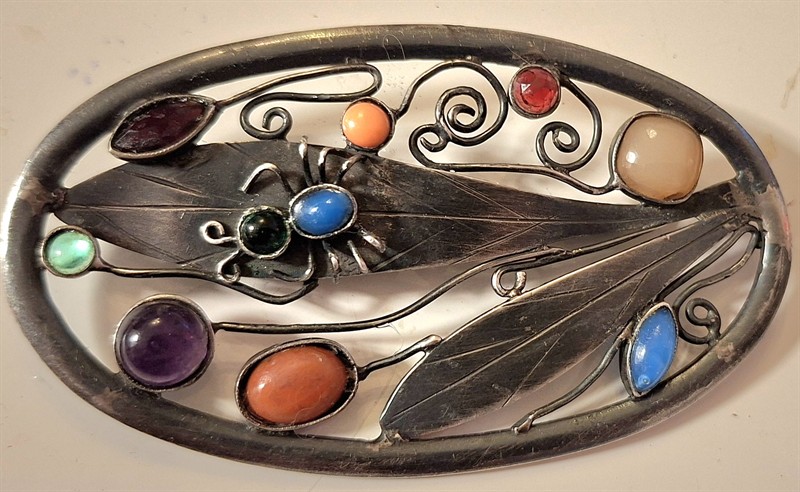 č. 180 474 Velká oválná brož s pavoučkem a barevnými kameny