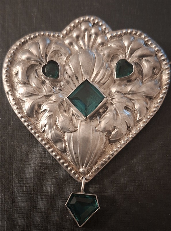 Velká stříbrná brož ve tvaru srdce