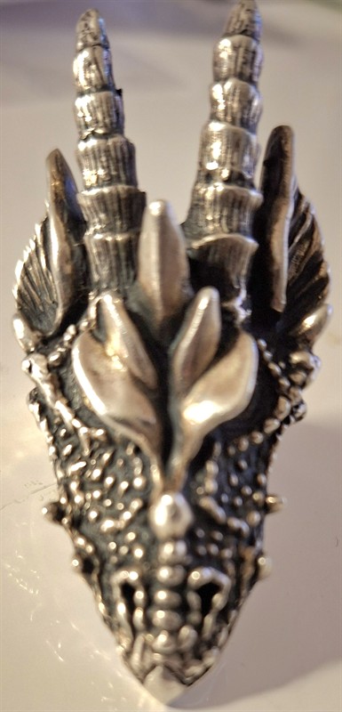 Velký stříbrný prsten s hlavou baziliška