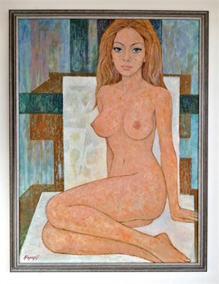 Vladimír Křepinský "Akt." Olej na plátně. Celkové rozměry: 78 x 102,5 cm. Rozměry bez rámu: 71 x 95,5 cm. V plátně je malá trhlina, měří 2 cm.