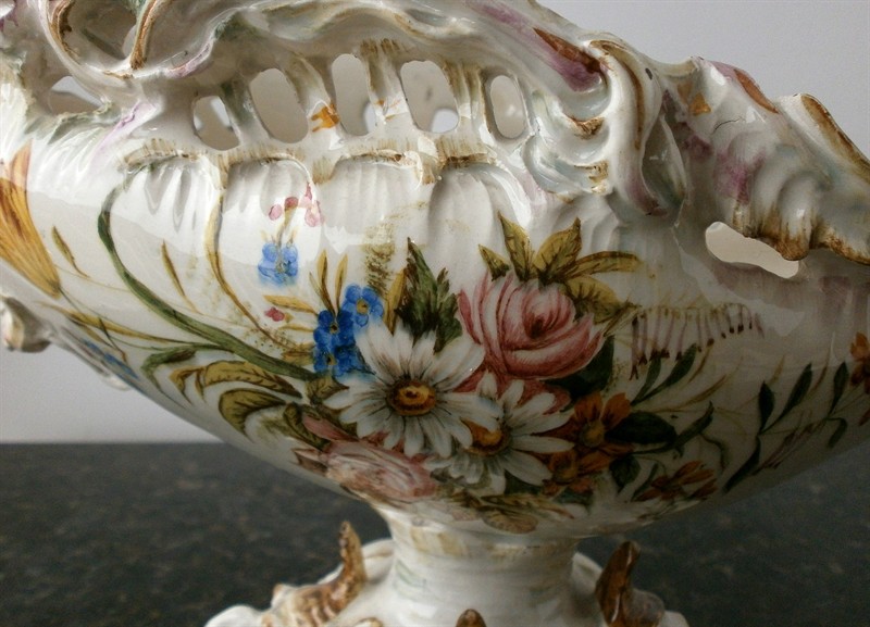 Zámecká žardiniéra majolika ve tvaru labutě