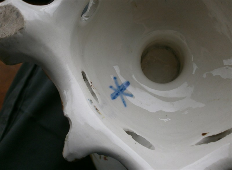 Zámecká žardiniéra stylizovaná labuť na podstavci s maskarony. Glazovaná majolika.. Velikost: výška 39,5 cm, šířka 35 cm. Pravděpodobně Manufaktura Pasquale Antonibon, Nove di Bassano, Itálie. 18.-19. století. Nepoškozená.