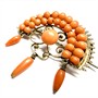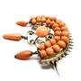 Velmi půvabná brož zdobená středomořskými korály sytého lososovitého odtínu. Šperk byl zhotoven z tombaku v druhé polovině 19.století. Rozměry cca 4 x 4 cm. Velmi dobrý stav.