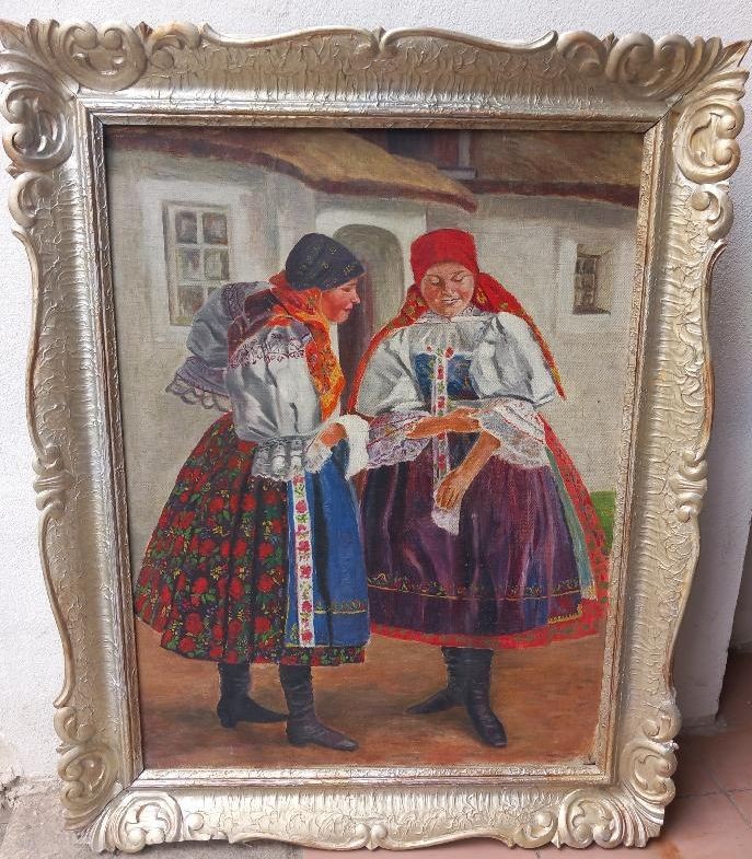 Obraz je olejomalbou na plátně podlepeném kartonem. Zobrazuje dvě ženy v kroji z Moravského Slovácka, konkrétně z Uherského Brodu.. Obraz je zarámovaný v původním dřevěném vyřezávaném rámu. Rozměr bez rámu je 80 x 60 cm, včetně rámu 98 x 78 cm. Obraz není signován. Vystihuje však věrně moravský kroj z oblasti Uherského Brodu.