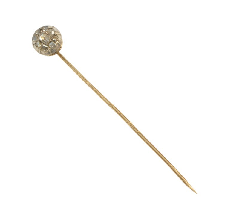 Rakousko – Uhersko, přírodní diamanty jednoduchého evropského brusu. Zlato o ryzosti 580/1000 o celkové hmotnosti 2,31 g, délka: 6,5 cm.