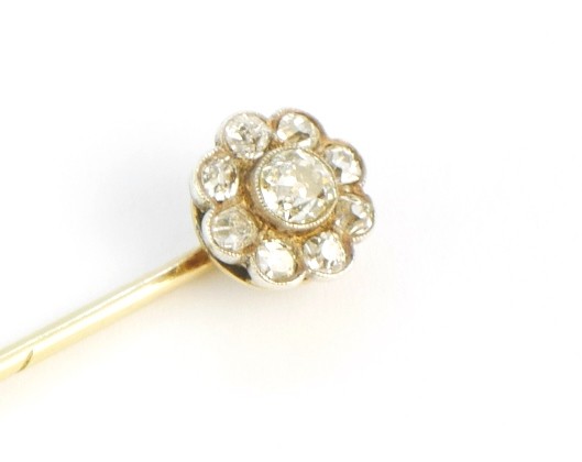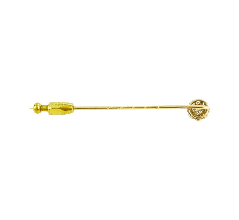 Jehlice vyrobená ze zlata ryzosti 585/1000 (punc liška) zdobená diamanty starého briliantového brusu o celkové hmotnosti zhruba 0,50 ct. Jezdec je zhotoven z obecného kovu. Délka 7,2 cm. Celková hmotnost 3,60 g (2,25 g Au).