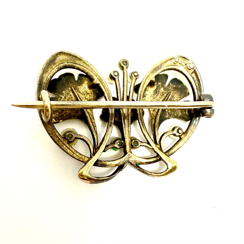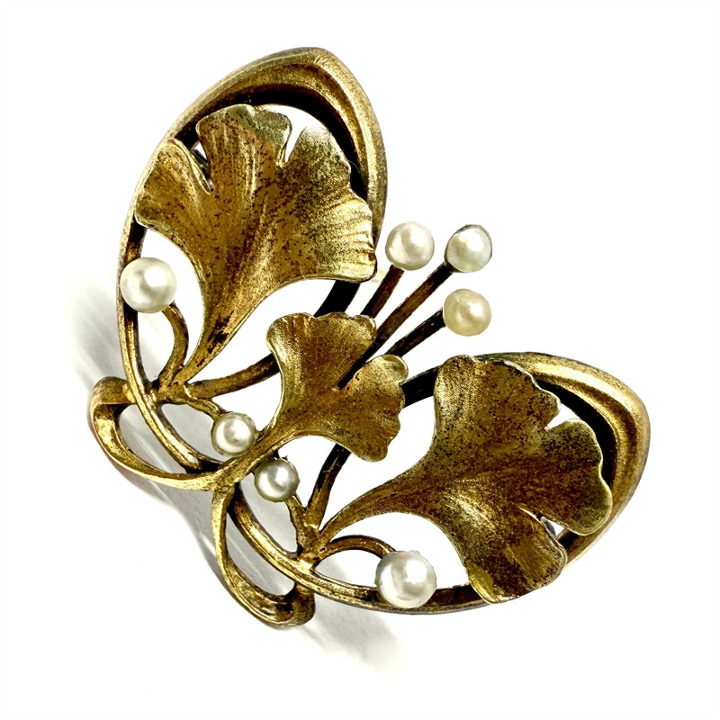Zlatá secesní brož s říčními perlami - ginkgo biloba