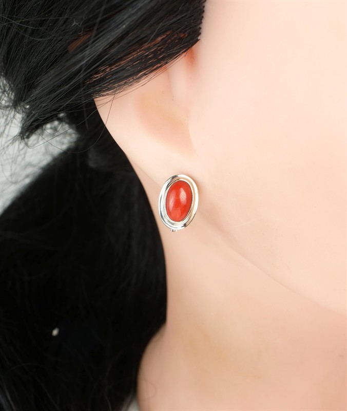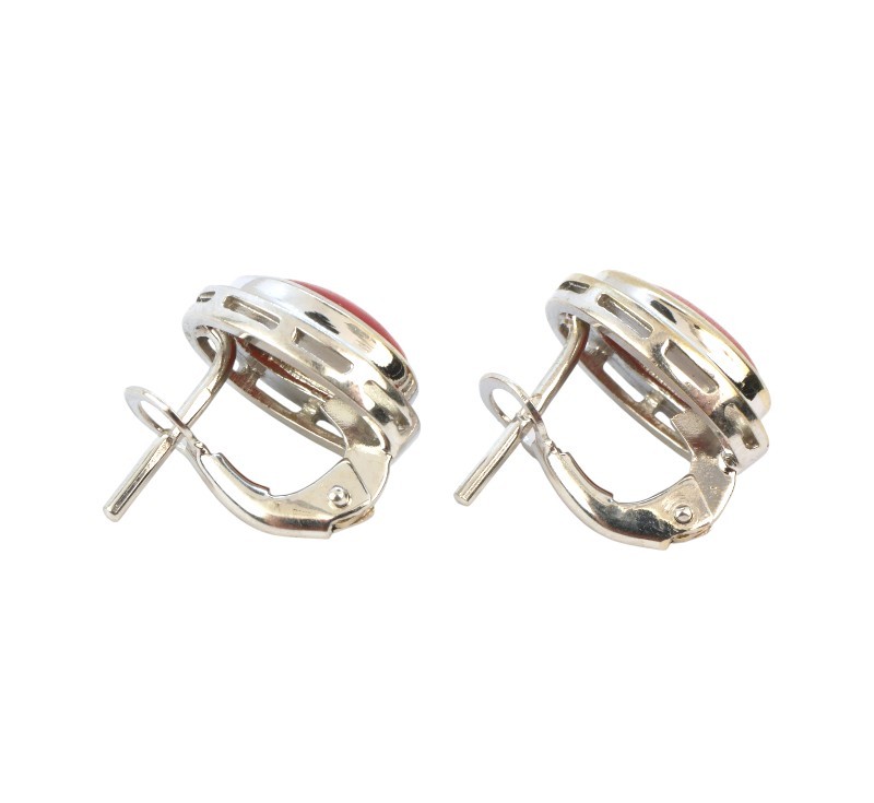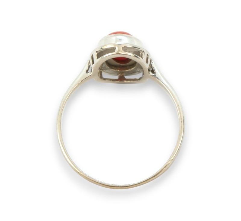 Souprava - prsten, náušnice a přívěšek - z bílého zlata ryzosti 585/1000 zdobená mořskými korály. Rozměry korálu 1 x 0,8 cm. Velikost prstene 56. Celková hmotnost soupravy 8,32 g.
