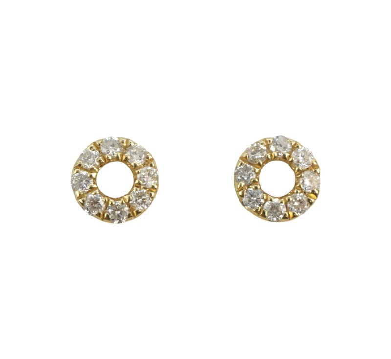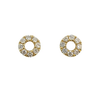 Náušnice ve tvaru věnečku ze žlutého zlata ryzosti 585/1000 s diamanty briliantového brusu o celkové hmotnosti 0,10 ct. Celková hmotnost obou náušnic je 0,72 g. průměr 5 mm.