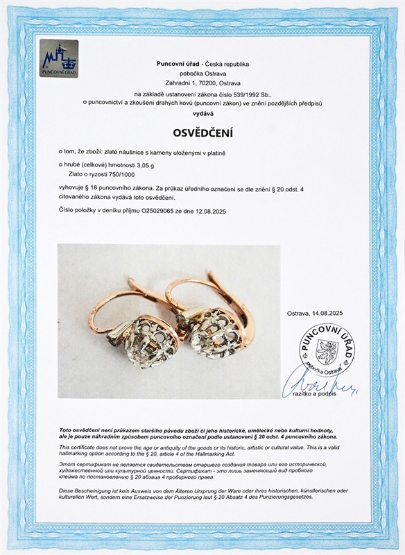 Zlato o ryzosti 750/1000 platina váha 3,05 g výška s ouškem 1,3 cm, průměr hlavy 0,6 cm přírodní diamanty 2 ks 0,50 ct, 2 ks 0,02 ct barva (I-J-K), čistota SI2 výborný stav osvědčení puncovního úřadu certifikát z gemologické laboratoře je součástí šperku Nabízíme kompletní zlatnický servis na nejvyšší úrovni – od úprav velikostí a odborných oprav přes rhodiování, čištění, leštění až po výměnu kamenů a znalecké posudky. Vše přizpůsobíme vašim přáním.