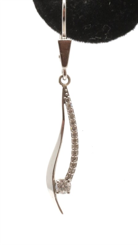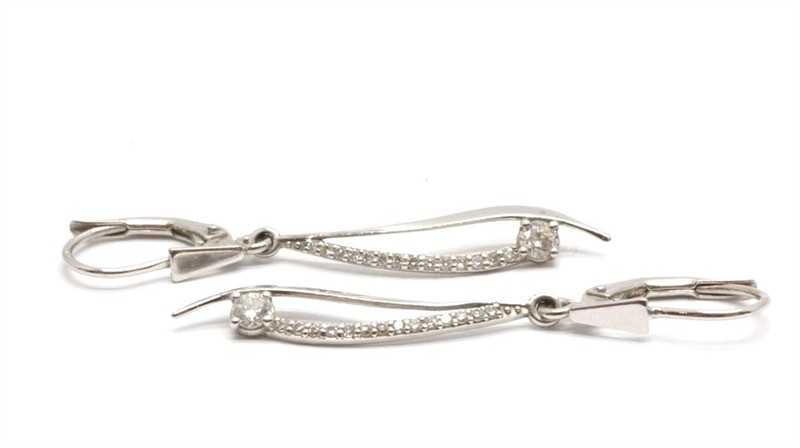 Zlaté náušnice s diamanty. Bílé zlato 585/1000. Přírodní diamanty, kvalita SI1 - SI2, barva H - I, celková váha 0,28 ct. Váha náušnic: 1,85 g. Délka náušnic: 3,2 cm.